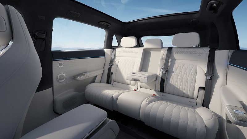 Автомобиль адаптирован к условиям российского климата: устойчиво работает при –30°C, оснащён системой активной терморегуляции батареи, трёхзонным климат-контролем и зимним пакетом. Отдельное внимание уделено усиленной антикоррозийной защите и увеличенному объёму бачка омывателя.